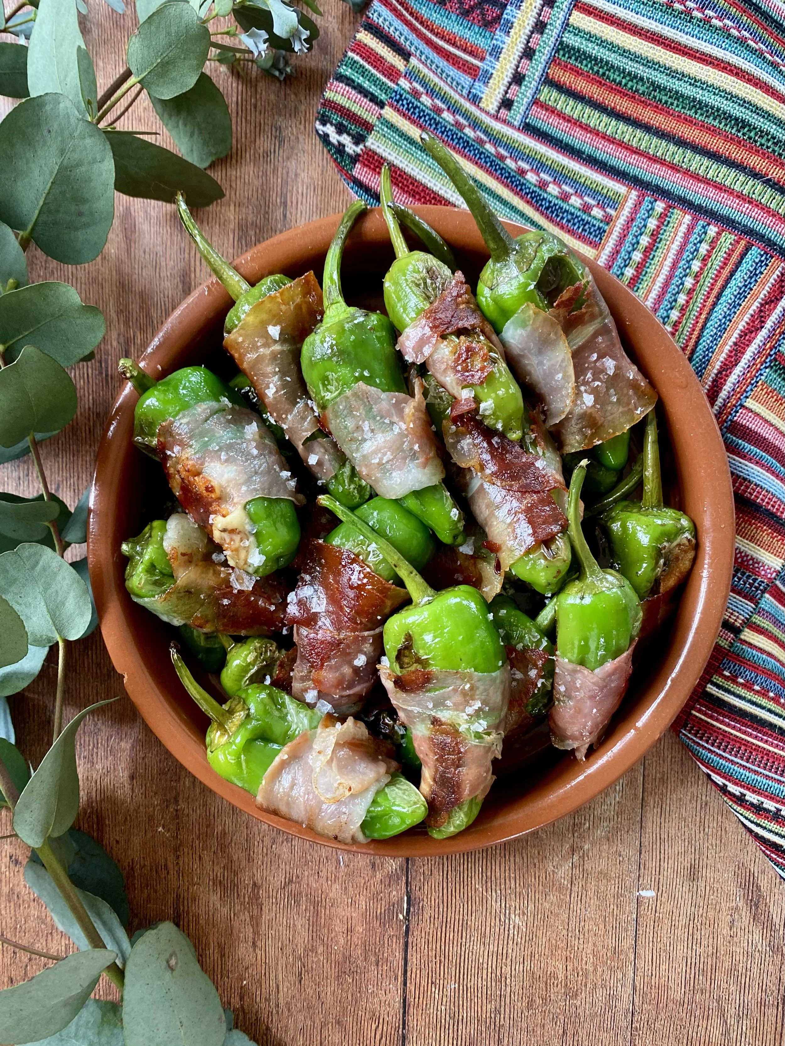 Cheese Stuffed Padron Peppers Wrapped with Prosciutto