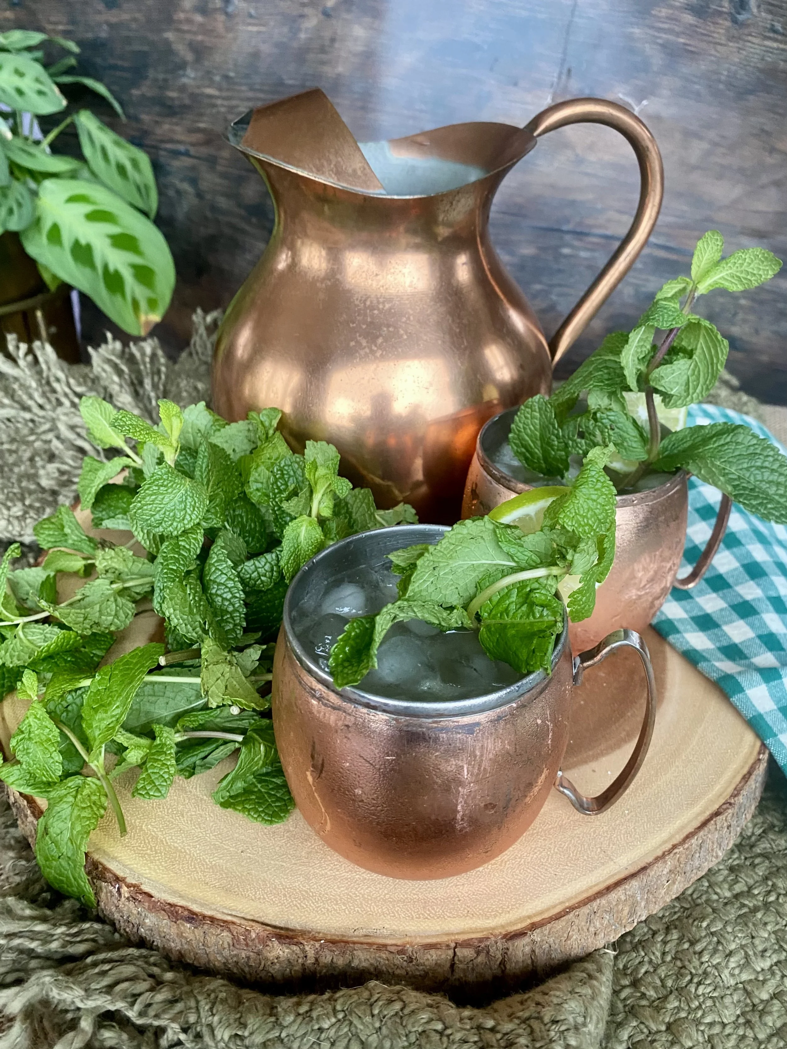 Add the Irish whiskey and fresh lime juice to a pitcher and stir well to combine. To serve, fill copper mule mugs with ice and pour the whiskey-lime mixture into each glass, leaving about 6 ounces of space at the top. Finish each mug with ginger beer, stir gently, garnish with fresh mint and a lime slice, and enjoy.