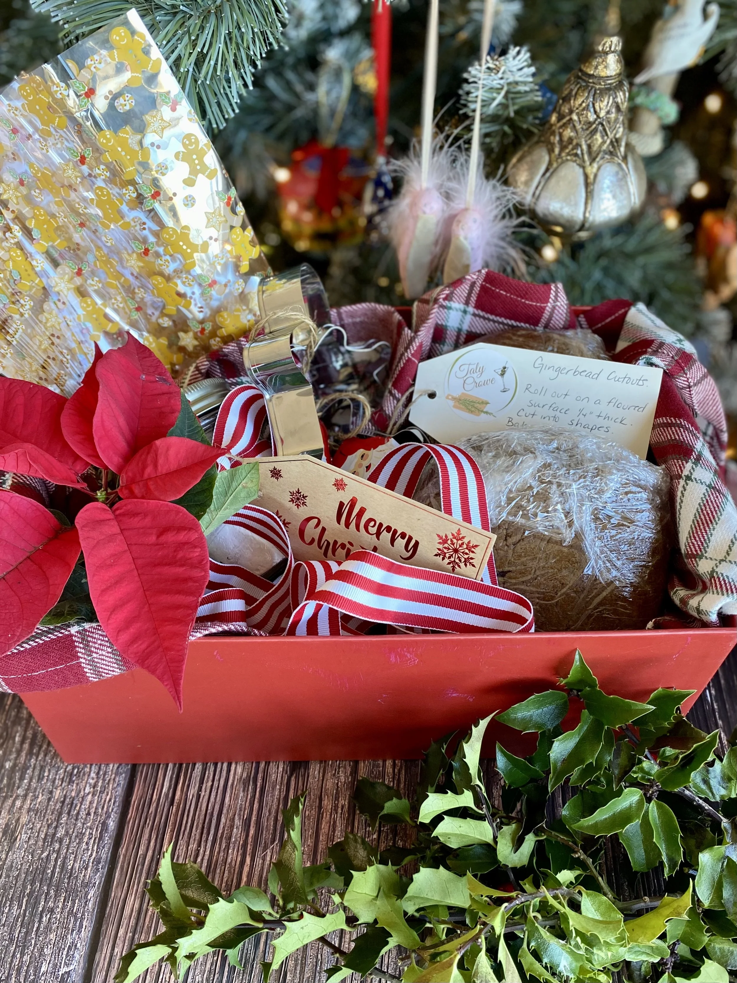 To elevate any basket, include beautifully crafted hand towels, napkins, or table runners. Add bottles of wine, aromatic candles, or homemade chocolates for a luxurious feel. For baking gifts, need-to-bake cookie dough is extra fun when paired with festive cookie cutters, holiday trinkets, ornaments, or even Christmas-themed spoons. Finally, tie it all together with stunning ribbon for that perfect finishing touch.